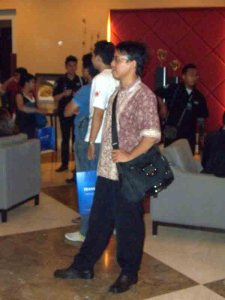 Bersama dengan beberapa orang dari team Yamaha,langsung berangkat ke hotel santika tempat Meet&Greet bintang-bintang OVJ sesampainya disana kebingungan  clingak-clinguk dimana ya tempatnya, samperin mbak berbaju Trans TV, kayaknya pegawai trans corp good looking semua deh,