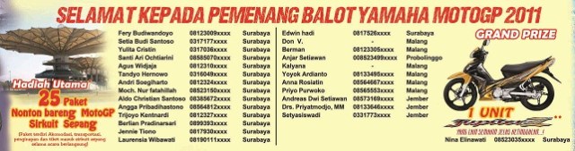 Kabar gembira nie 2 teman kita bloger kondang juragan kones/komstir Edwin hadi (link) sama sang FBH sejati Om Wiro aka Dani R (link) berhasil memenangkan hadiah untuk berangkat ke sepang..asyik…