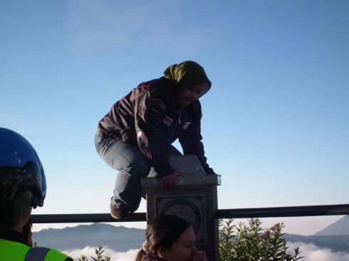 jam 2 pagi kami berangkat menuju penanjakan, jalanannya mengingatkan pada salah satu film kesukaan saya initial D jalan berkelok2 curam walaupun memang tidak ekstrim tapi jalan yg gelap dan berpasir membuat kita harus fokus…fokus…fokus…eh saya sempat masuk ke bahu jalan..xixixi, oke sesampai dipenanjakan, yg terasa cuma dingin…dingin…dingin…hiks…adem’e rek ![]()