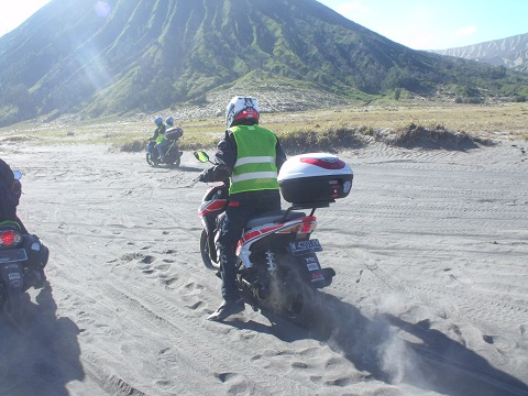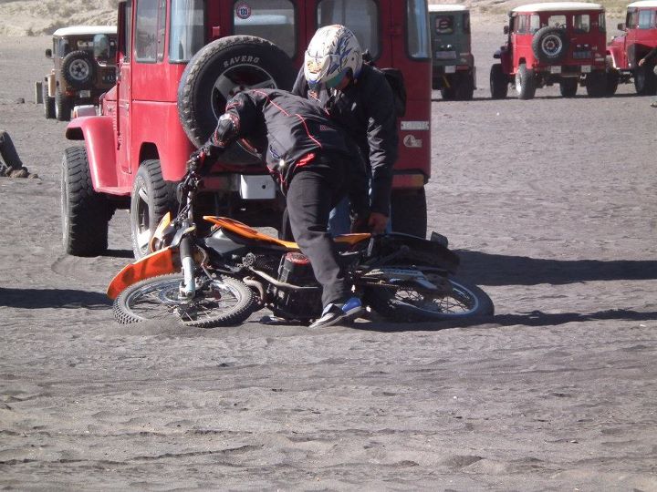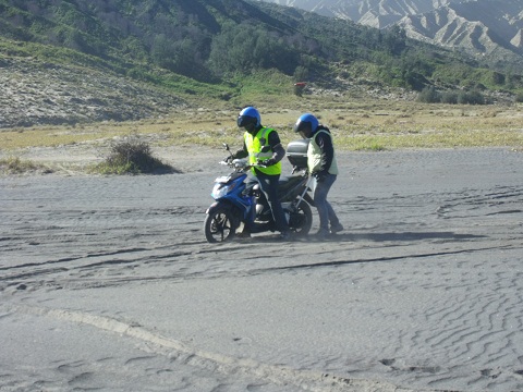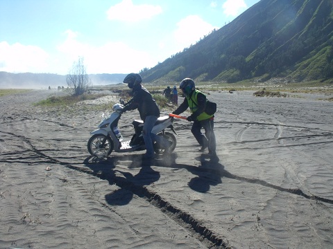 Kondisi di Lautan pasir memang sangat tidak bersahabat…pasirnya lembek karena tidak turun hujan sama sekali, apalagi dengan kondisi Xeong yang full muatan perlu usaha extra keras buat menyelamatkan diri dari keganasan lautan pasir bromo.