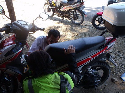Untung kita selalau membawa mekanik, yang juga merupakan anggota Yamaha-friends, jadi ada yg bantu benerin xixixi