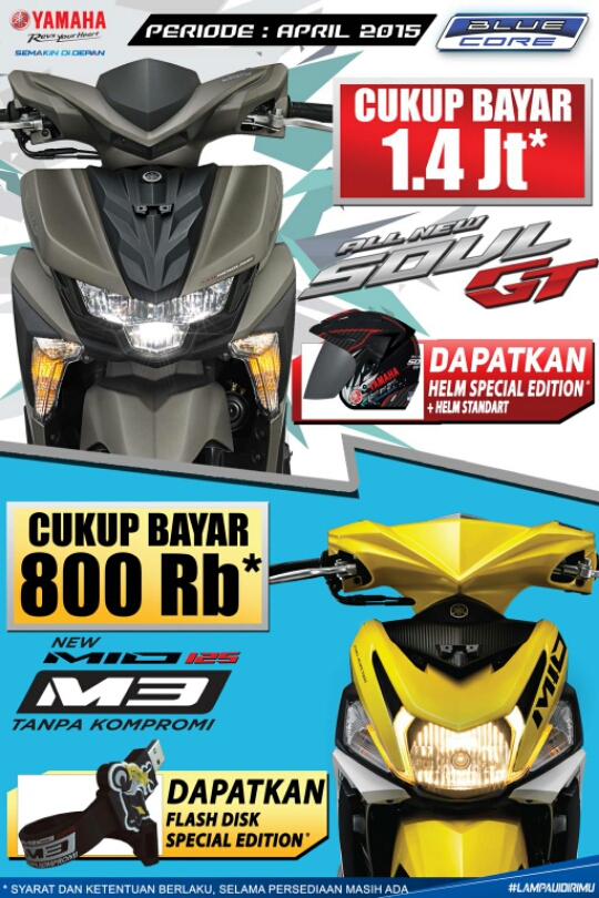 Di bulan April ini Yamaha kembali melakukan program hard selling untuk mengenjot penjualan maticnya yang baru, Mio M3 dan Soul GT Bluecore.