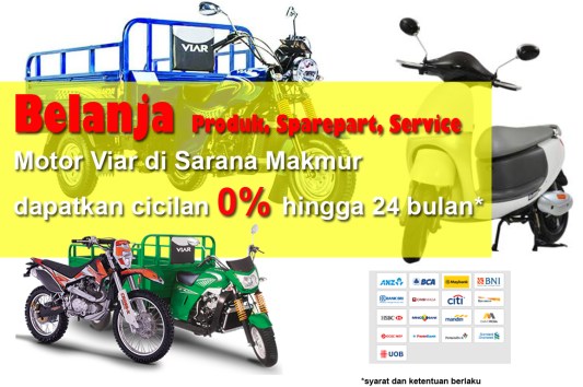Suatu terobosan dilakukan Distributor utama Viar jatim, yaitu PT Sarana Makmur, dimana mereka saat ini melayani Penjualan via kartu kredit dengan promo yang “gila” menurut madev, bayangkan biaya service dan sparepartspun bisa lho dicicil, dan semua itu tanpa bunga!! sekali lagi tanpa bunga!! (berbahagialah bagi mereka yang punya kartu kredit)