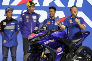 “Hari ini saya ingin mengumumkan bahwa logo SEMAKIN DI DEPAN akan tersemat di kejuaraan Dunia MotoGP bersama Movistar Yamaha MotoGP dan Monster Yamaha Tech3, juga kejuaraan WSBK dengan tim PATA Yamaha Official Worldsbk dan tim Yamaha Moto X Racing WSSP300,” ucap Minoru Morimoto, Presiden Director Chief Executive Officer PT. Yamaha Indonesia Motor Manufacturing (YIMM).