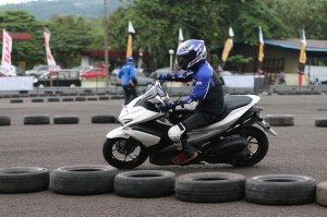 ”Saat riding tadi saya merasakan akselerasi dan handling yang stabil. Motor matik tapi berasa sporty banget. Cocok banget buat yang punya jiwa sporty tapi ingin tetap naik matik. Saya kan bergabung dengan YMCI (Yamaha MX Club Indonesia) jadi suka motor berkarakter sport meskipun bukan motor sport. Aerox 155 mendukung kebutuhan konsumen seperti itu,” papar pemenang pertama Rohmat Fitrianto.