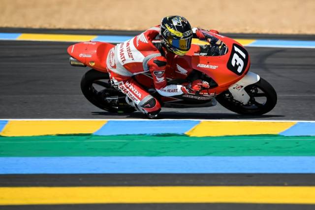 Pembalap binaan Astra Honda Motor (AHM), Gerry Salim menjalani akhir pekan yang sulit di lintasan balap legendaris sirkuit Le Mans, Prancis pada Sabtu (19/5). Dalam balapan satu-satunya di kelas Moto3 CEV Junior World Championship ini, pembalap Indonesia tersebut harus finish di posisi ke-25.