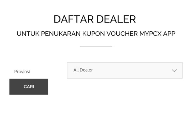 Ini daftar dealer yang ada di aplikasi my PCX, kamu bisa cari lokasi dealer yang dituju untuk menukarkan voucher kupon!