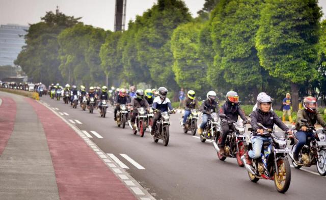 Keseruan yang tidak kalah heboh lainnya adalah Sunday Morning Ride bareng komunitas motor Suzuki, alias Sunmori. Ratusan pecinta motor Suzuki dari berbagai komunitas merek tersebut yang ikut dalam acara bertajuk Road To Victory.