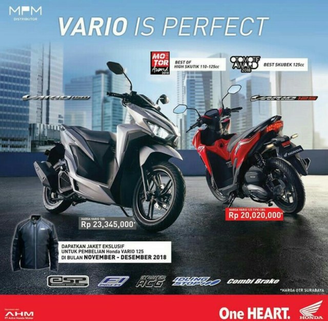 Sudah tahu belum kalo kamu bisa dapatkan jaket eksklusif di setiap pembelian varian Honda Vario 150 maupun Honda Vario 125eSP.