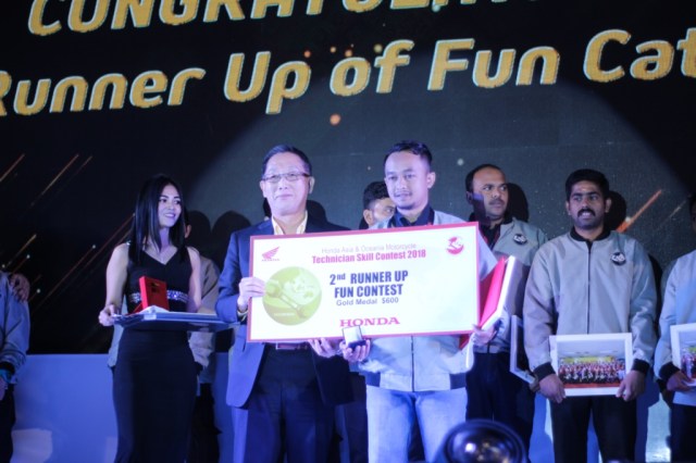 Teknisi AHASS terbaik itu adalah Muhammad Ahi Wahyuni yang menjadi pemenang utama kelas motor Commuterdan Dodik Kuswinarno yang meraih gelar pemenang utama kelas Fun atau kategori Big Bike. Prestasi ini semakin lengkap dengan diraihnya gelar juara 2nd runner up kelas Fun atau Big Bike oleh Tedi Eka Budiana. Atas semua prestasi ini, Indonesia dinobatkan sebagai negara terbaik dalam kompetensi teknik Honda dalam melayani konsumen.