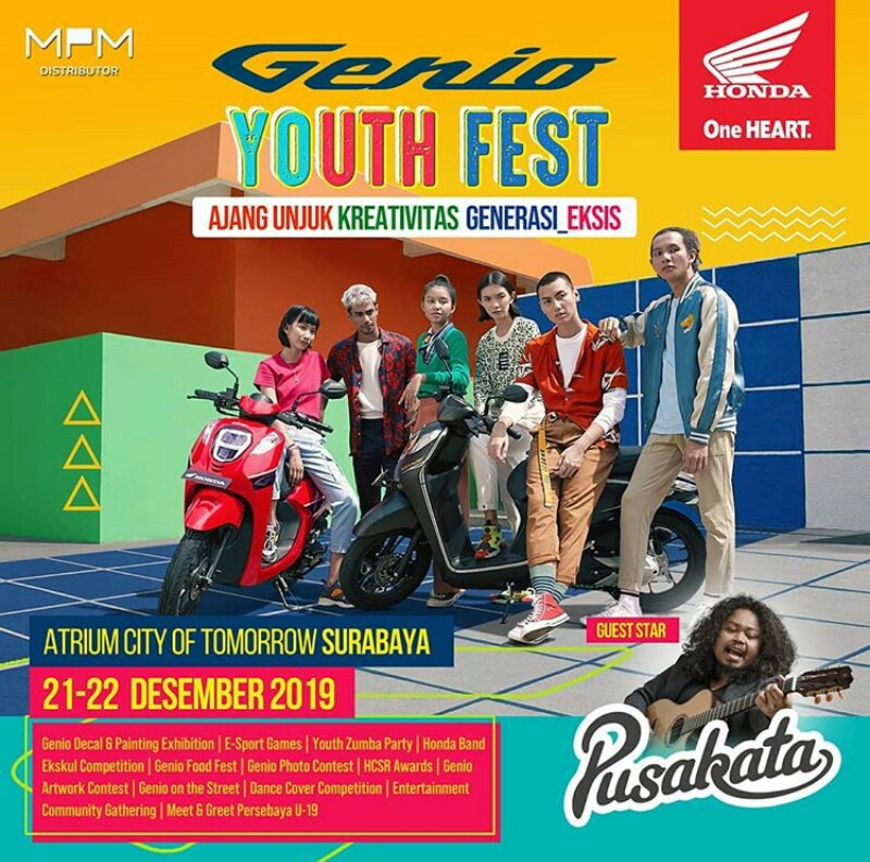 MPM Honda Jatim bakal memboyong Genio ke City of Tommorow (Cito) Surabaya. Acara dengan nama ‘Genio Youth Fest’ tersebut menghadirkan banyak keseruan dan hadiah..