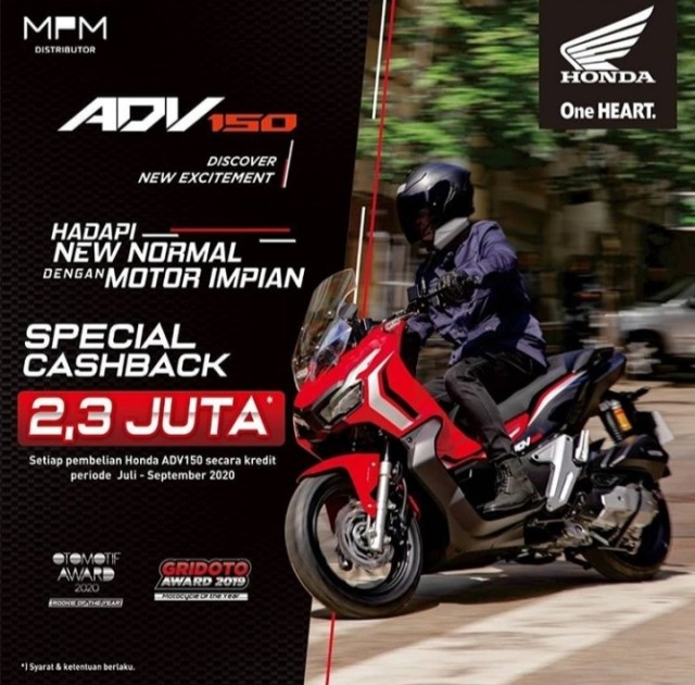 Kalau motor impian kamu Honda ADV 150 pas banget, karena ada promo spesial cashback Rp 2,5 juta setiap pembelian kredit selama periode Juli – September 2020.