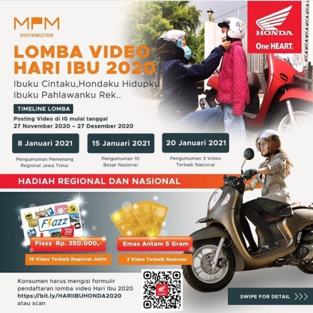 Digelar MPM Honda Jatim ada Lomba Video Hari Ibu 2020 yang dimulai sejak 27 November – 27 Desember 2020.