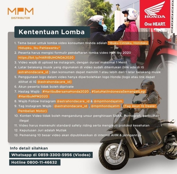 Masih ada waktu, segera posting video terbaikmu di Instagram ya, dengan tema ‘Ibuku Cintaku, Hondaku Hidupku, Ibu Pahlawanku.’