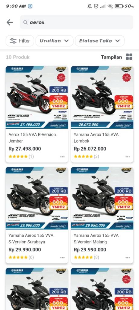 Konsumen yang melakukan pembelian motor Yamaha di Tokopedia bakal mendapatkan diskon tambahan sampai Rp 600 ribu dengan memasukan kode voucher YMH12.