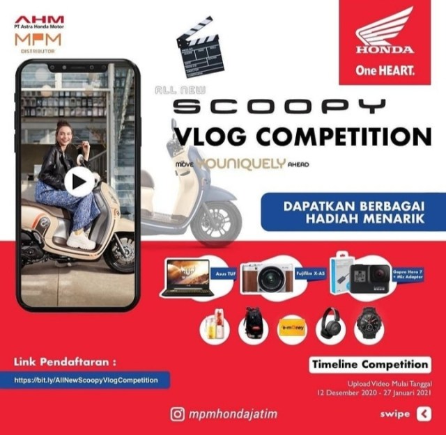 - Upload video di YouTube dengan hastag #MoveYouniqelyAhead #AllNewScoopy #ScoopyVlogCompetition