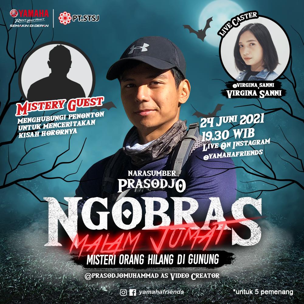 Pada Ngobras Malam Jumat kali ini, Prasodjo akan mengungkap mitos dan fakta soal misteri pendaki gunung. Hilang karena hal mistis atau alam? Mau tau lebih lengkapnya, yuk ikutin Ngobras Yamahafriends di Instagram @Yamahafriends pukul 19.30 WIB dan bagi kamu yang punya cerita pengalaman terbaik saat mendaki gunung punya kesempatan untuk dapat voucher OVO 200.000.