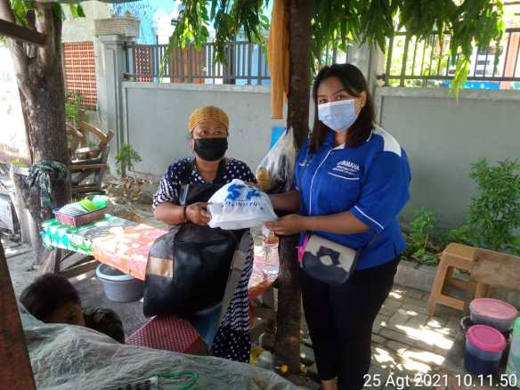 Mbok Sarni yang merupakan pedagang kaki lima di area Manyar berterima kasih saat menerima bingkisan nasi dari Yamaha Jatim. “Alhamdulilah, terima kasih banyak mas. Semoga kebaikannya dibalas oleh yang di atas ya. Terima kasih sudah perhatian dengan keadaan kami mas,” ujarnya.