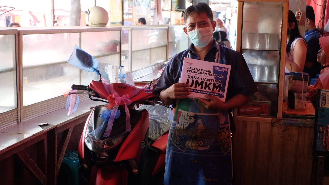 Sementara itu, salah seorang konsumen yang merasakan pengalaman berbeda di Hari Pelanggan Nasional ini mengungkapkan kebahagiaan mendapatkan layanan dari management PT. YIMM dan memperoleh dana bantuan khusus. ”Selama saya memiliki produk Yamaha dari tahun 2007, Alhamdulillah saya merasa puas dengan kualitas motor-motor yang saya beli mulai dari Jupiter MX, Mio M3, dan sekarang saya beli Gear 125 yang ditambah dapat bonus lagi. Terimakasih Yamaha atas perhatiannya, saya sangat berterimakasih dengan hadiah kejutan ini yang membuat saya kaget banget tidak menyangka memperoleh rejeki ini,” ungkap Wawan Gefira, pedagang gado-gado yang juga merupakan konsumen loyal Yamaha.