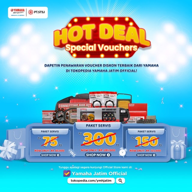 Segera kunjungi Yamaha Jatim Official di Tokopedia atau melalui link Tokopedia.com/ymhjatim dan buruan dapetin voucher spesial diskon!