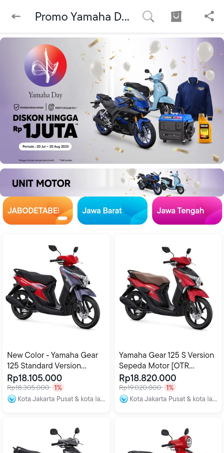 baik kepercayaan dari Yamaha Indonesia untuk Blibli dapat ikut mendukung program Yamaha Day 2023. Pelanggan dapat menikmati berbagai penawaran menarik untuk setiap pembelian unit motor,