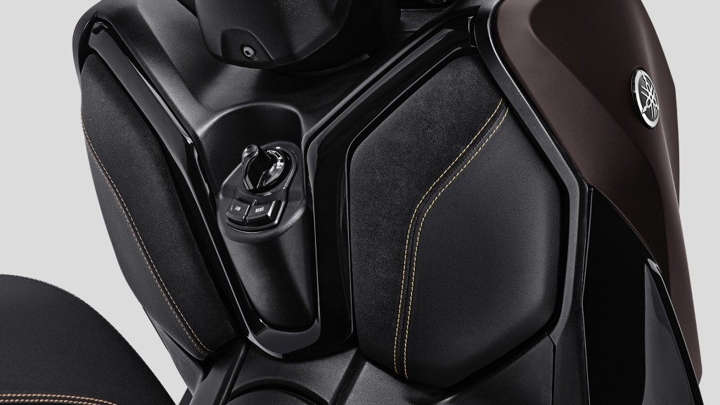 Komponen special pada XMAX Tech MAX yang kental akan nuansa premium, dapat dijumpai pada beberapa bagian sepeda motor. Pada bagian cockpit, sentuhan artistik dan mewah tersebut terletak pada komponen Jok dan juga Cover Lid Pocket yang menggunakan material sejenis kulit dengan pola jahitan beraksen emas.