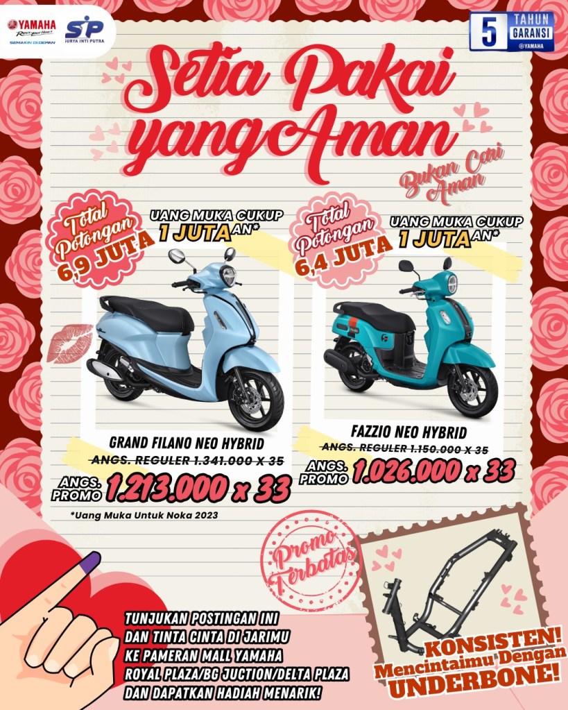 Sepanjang Februari 2024, Yamaha STSJ menawarkan potongan harga menarik bagi pecinta skuter matic Classy Yamaha, yaitu Grand Filano Neo Hybrid dan Fazzio Neo Hybrid.