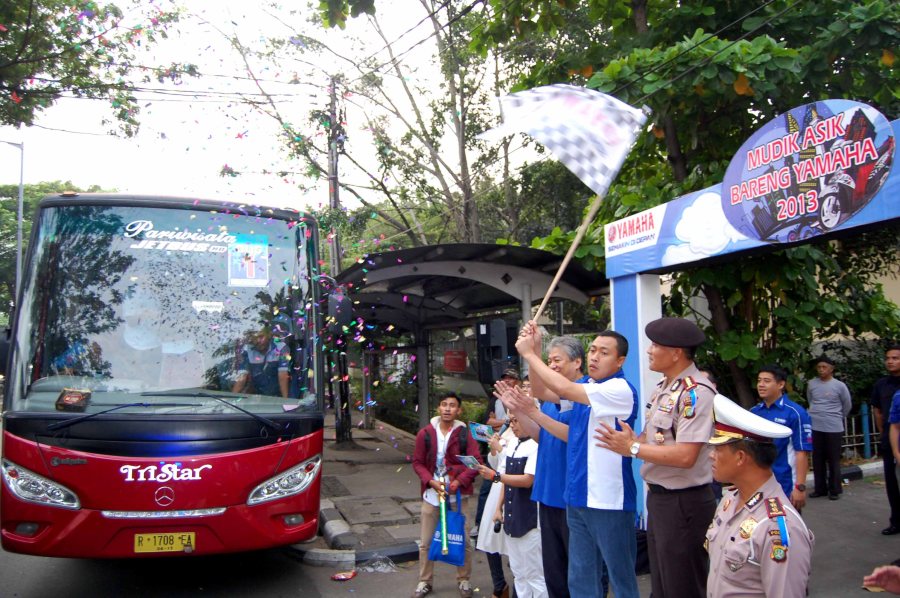 Direktur Sales PT YIMM Sutarya dan Executive Vice President Dyonsius Beti melepas peserta Mudik Asik Bareng Yamaha 2013