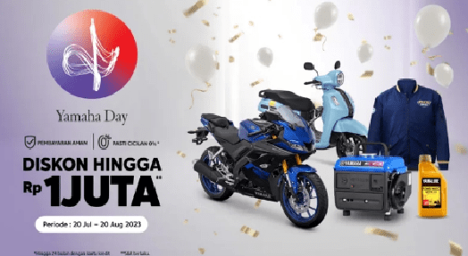 Program spesial berupa potongan harga hingga 1 juta Rupiah* untuk pembelian semua tipe motor Yamaha melalui e-commerce Blibli. Hal ini berlaku juga untuk pembelian spare part, apparel, Oli Yamalube dan Yamaha Power Product baik pembayaran tunai ataupun dengan kartu kredit. Program spesial ini berlangsung selama periode 20 Juli 2023 hingga 20 Agustus 2023.