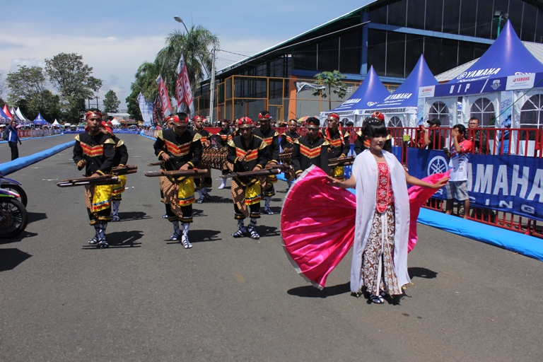 Tarian tradisional dalam opening Yamaha Cup Race Seri 1 (25 Tahun YCR) di GOR Satria Purwokerto